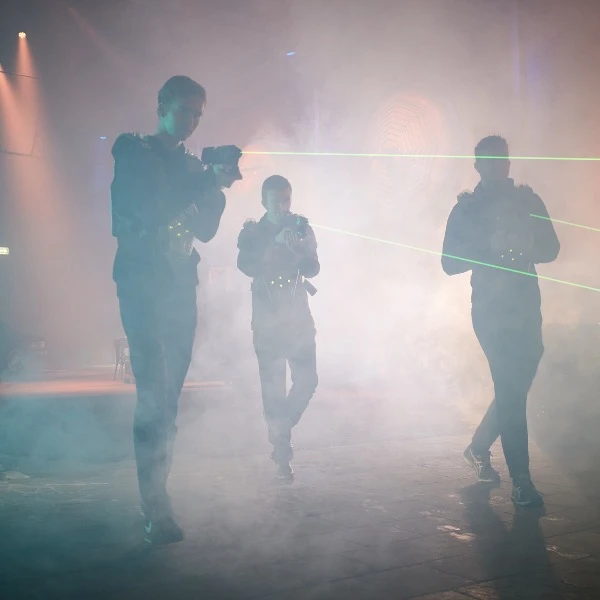 Een actieve activiteit organiseren op eigen locatie voor jong en oud, huur dan het indoor lasergamen bij Attractieverhuur TimTom. Het lasergamen is een uitdagend spel, dat op elke locatie gespeeld kan worden. De ruimte wordt helemaal omgebouwd tot een indoor lasergame arena. Wij zullen naast de pakken en computer ook lichten, rookmachines en boxen meenemen. Hierdoor is het uitermate geschikt voor personeelsfeesten & studentenverenigingen.
