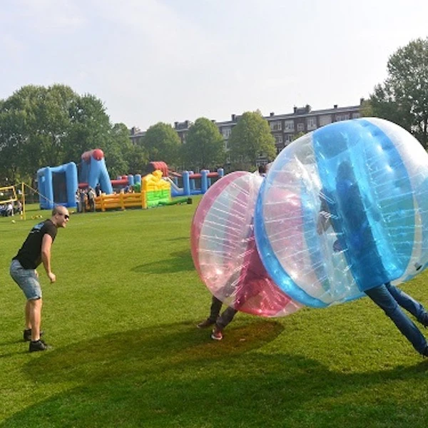 Een stuiterend succes voor ieder evenement! Bumpervoetbal huren betekent een onvergetelijke ervaring voor jong en oud. Botsend, stotend én rollend strijden twee teams om de meeste doelpunten. Techniek en inzicht is niet langer genoeg om te voorkomen dat je uit het spel wordt gekegeld. Gooi dus al je gewicht in de strijd, stoot je tegenstander opzij en scoor als een stuiterbal.