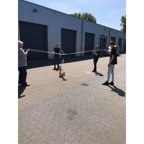 Bij Attractieverhuur TimTom huur je het zeskamp attractie Block on Stock.Dit is een leuk uitdagend spel om met 4 tot 6 personen uit te voeren. Haak het blok een voor een aan de module en stapel de blokken op elkaar. Belangrijk dat samenwerken een must is!