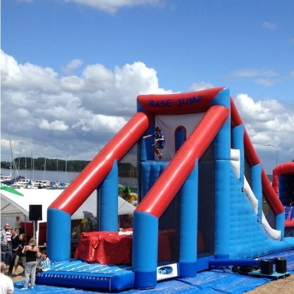 De Enkele Base Jump is een indrukwekkende attractie. U kunt de Enkele Base Jump in vier verschillende vormen huren bij Attractieverhuur TimTom. De offerte op maat geeft u keuze uit: afhalen, bezorgen, bezorgen inclusief op- en afbouwen en compleet verzorgd. Wil je nog groter en nog hoger! Kijk dan even bij de Dubbele Base Jump of de Multi Sky Swing!