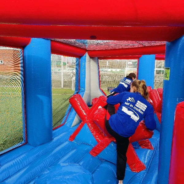 Wil jij een compacte en toch nog een grotere stormbaan huren? Dit kan met The Mini Giant Stormbaan van Attractieverhuur TimTom met een totale stormbaan lengte van 27 meter. Alleen de totale lengte is met de helft verkleind door de bochten, waardoor deze totale lengte compacter is dan ooit.