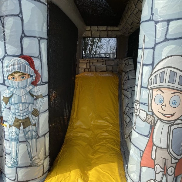 Speciaal voor de kinderen zijn deze gave middel springkussens van TimTom te huur. Deze compacte en lichtgewicht kussens zijn ideaal voor in je voor- of achtertuin, een oprit of zelfs binnen in de kamer of garage. Het Multiplay Kasteel springkussen is overdekt en heeft als extra een glijbaan in het springkussen zitten. Dus naast dat je op dit springkussen kunt springen, kunnen de kinderen ook naar beneden glijden. Het Multiplay Kasteel springkussen heeft een leuke full-color print erop. Met het Multiplay Kasteel springkussenhaal je een fantasierijk en vrolijk thema binnen waar elk kind wel blij van wordt.