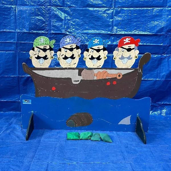 Huur bij Attractieverhuur TimTom het Piraten koppen omgooien. Gooi de piraten van de boot af door de koppen om te gooien.