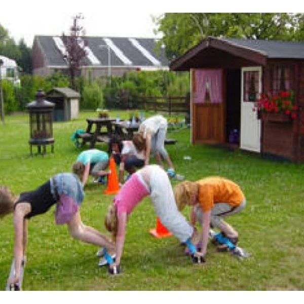 2 teams nemen achter elkaar plaats en proberen als eerste de eindstreep te halen (het is moeilijker dan je denkt).