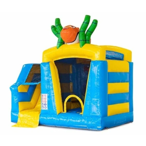 Speciaal voor de kleinere kinderen zijn deze gave Mini springkussens van TimTom te huur. Deze compacte en lichtgewicht kussens zijn ideaal voor in je voor- of achtertuin, een oprit of zelfs binnen in de kamer of garage. Het Mini Seaworld Slide springkussen is overdekt en heeft als extra een glijbaan in het springkussen zitten. Dus naast dat je op dit springkussen kunt springen, kunnen de kinderen ook naar beneden glijden. Het Seaworld Slide springkussen heeft een leuke full-color print erop. Met het Seaworld Slide springkussen haal je een fantasierijk en vrolijk thema binnen waar elk kind wel blij van wordt. Wacht dus niet te lang en huur snel het Mini Seaworld Thema springkussen!