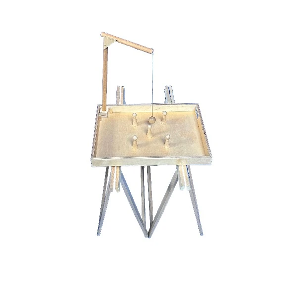 Bij Attractieverhuur TimTom huur je het slingerbak. Probeer de pionnen om te gooien met de kegel. De afmeting 40 x 40 x 60 cm en de slingerbak mag alleen binnen gebruikt worden.