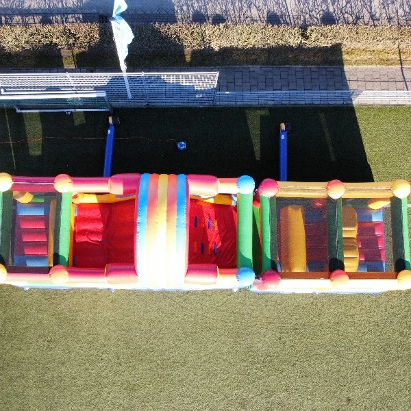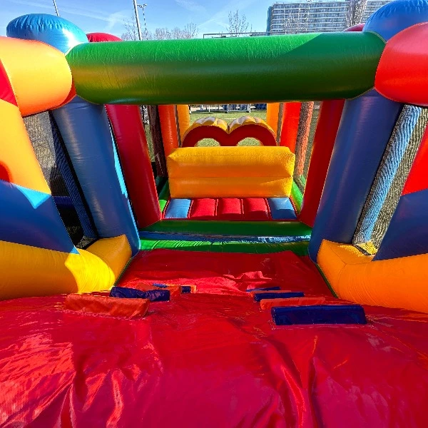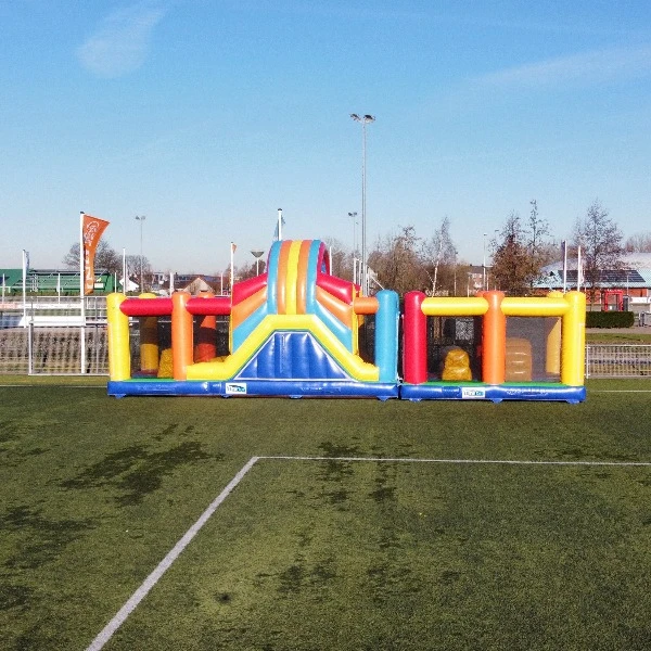 Deze 13.5 meter lange hindernisbaan is gemakkelijk te plaatsen en door zijn lengte past hij ook op vele locaties. Maar toch doet hij niet onder aan de andere stormbanen van TimTom. Uitdagend, Fun en plezier dat biedt deze stormbaan! De stormbaan is volledig voorzien van netten, waardoor deze ook extra veilig is. Toch zie je het van de buitenkant nog steeds goed.
