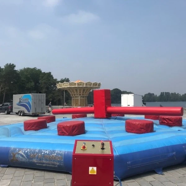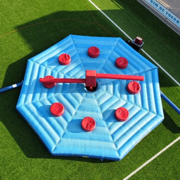 De Sweeper Wipe out stormbaan is een ideale manier om competitie en plezier met elkaar te combineren. Zowel toeschouwers als deelnemers zullen hier veel plezier aan beleven. Het idee is dat deelnemers plaatsnemen op de paal en de ronddraaiende armen weten te ontwijken. De persoon die de wipe out baan bediend heeft de mogelijkheid de snelheid te verhogen, dus pas op!