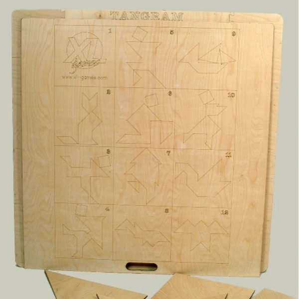 Bij het spel Tangram XL moet je zo snel mogelijk proberen de figuren te maken die op de afdekplaat te zien zijn. Ons Tangram XL bestaat uit een Tangram opbergbord met 7 verschillende puzzelstukken (Tans) en 2 dobbelstenen. Het speelbord dient op een tafel geplaatst te worden. Wie is de beste puzzelaar?