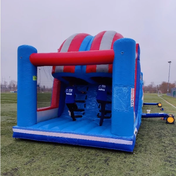 Voor de echte bikkels is er de Tunnelslide stormbaan te huur. Klimmen, klouteren, vallen en weer doorgaan: het hoort er allemaal bij. Wil jij voor een beetje competitie op jouw event zorgen? Dan is deze Tunnelslide stormbaan ideaal. Meteen vanaf het begin start je met de eerste beklimming waarna je vervolgens naar beneden glijdt door de tunnels. Zorg dat je daarna zo snel mogelijk klimt over de megarol. Maar pas op! Want voordat je het weet val je van de megarol af naar beneden. Heb je deze weten te verslaan? Ren dan nog een laatste keer door de blokken heen van de Tunnelslide om als eerste over de Tunnelslide stormbaan te komen!